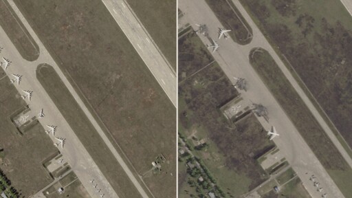 The photos provided by Planet Labs PBC show aircraft wreckage and scorched areas at the Belaya Air Base, a major installation for Russia’s long-range bomber force. In the images, at least three Tu-95 bombers and four Tu-22Ms appear to be destroyed.