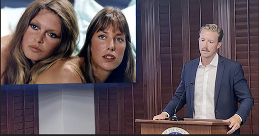 In the article picture, it looks like Jane Birkin and Brigitte Bardot, who are not porn actresses, but french cinema always had a lot of nude scenes